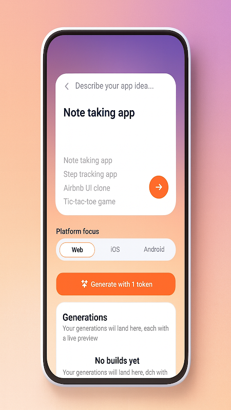 Vibecode xây dựng các ứng dụng Android tuyệt đẹp, có thể cài đặt trên bất kỳ điện thoại hoặc máy tính bảng Android nào hoặc tải lên cửa hàng Play. Vibecode miễn phí sử dụng cho các ứng dụng cơ bản.