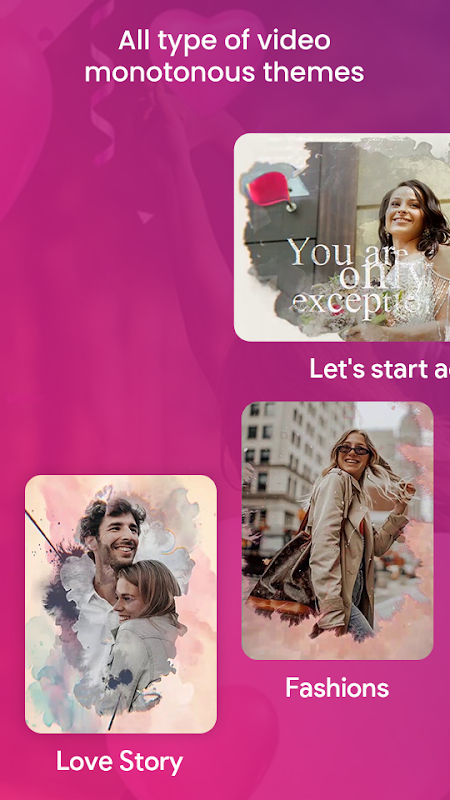 Impress your friends now with amazing never seen video status effects and share your feelings with your loved ones.