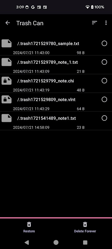 Các tập tin đã xóa sẽ được giữ trong thùng rác và tự động bị xóa sau khoảng thời gian được chỉ định (mặc định là 30 ngày). Các tập tin đã xóa có thể được đặt lại.