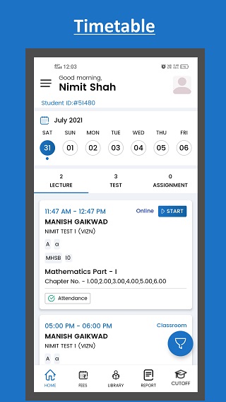 Teachers and students directly connect on the app as per the schedule. No need for your teachers to create and monitor multiple links for every batch and every lecture.