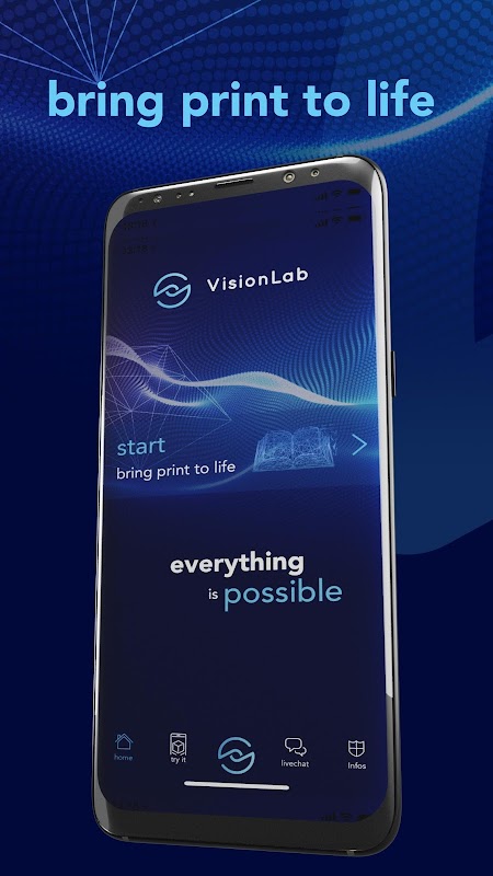 Các "Vision Giấy AR-Scanner" và sự cho phép để truy cập vào camera tích hợp thiết bị di động, bạn có thể truy cập như một người dùng để chuẩn bị nội dung VisionLab AR trên báo chí hoặc các đối tượng.