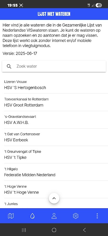 Bằng cách đăng nhập bằng tài khoản MySportvisserij của bạn, các tài liệu câu cá đang hoạt động của bạn sẽ được truy xuất và vùng nước nơi bạn được phép câu cá có màu xanh lam (xem chú thích để biết thêm thông tin).