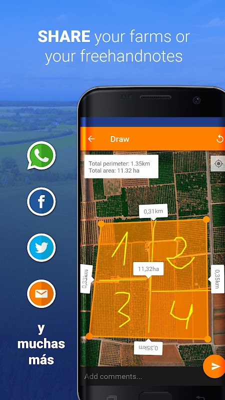 - Draw yor farms, add pictures and share them with other APPs.