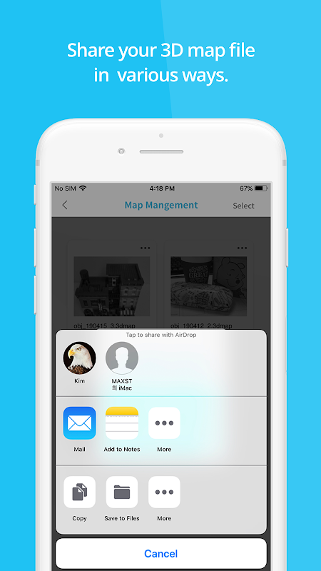 2. [Quản lý bản đồ]: Bạn có thể quản lý các tệp bản đồ 3D đã tạo. Trong Quản lý bản đồ, bạn có thể chỉnh sửa ghim và chia sẻ tệp bản đồ theo nhiều cách khác nhau.