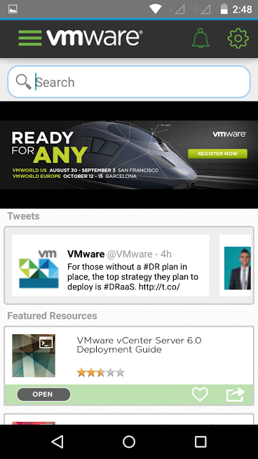 The Mobile Knowledge Portal gives you access to VMware marketing and technical content. Use the application to watch installation videos, read product whitepapers, and learn best practices.