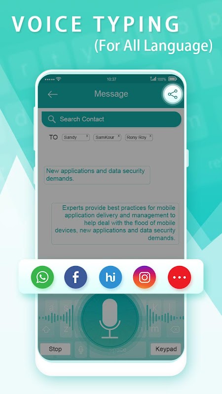 Voice Typing in All Language: Speech to Text is a simple app and user friendly application. The text appears after you done Talking. Once you get the regularity, you can use the app and send, share long texts and articles in other social media and many social media messaging application. voice typing Supports more than 70 different languages.