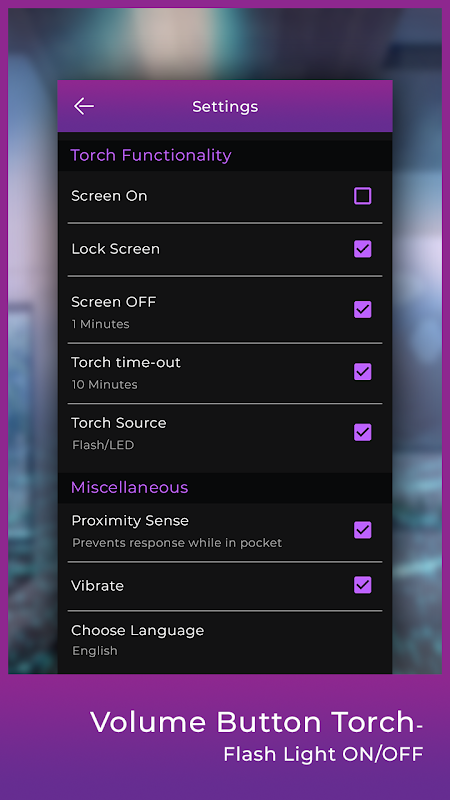 Volume Button Torch - Flashlight ON OFF Torch also has a manual button to use on the screen to power on the torch.