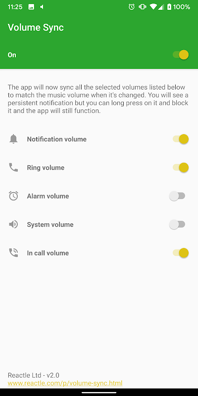 Chọn luồng âm lượng tự động đồng bộ hóa với chuông báo hoặc âm lượng phương tiện khi bạn thay đổi.