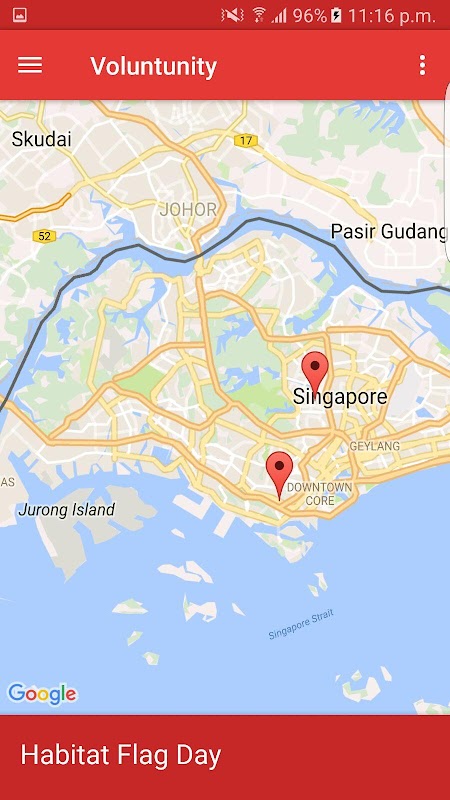 Voluntunity is a mobile app designed to connect volunteers to nearby organisations who need help. Users are shown a map with nearby volunteering opportunities marked. They can filter this list by interests and the relevant opportunities will show up on the map. Users can then select an opportunity to see short description of the organisation and what the opportunity entails, scheduling details, and a list of skills required as well as a link to the organisation's signup page. We have come up with a system where organisations rate the reputation and performance of each volunteer. This reputation score is tied to each user. For the organisations that actually host these opportunities, we will have a web interface to let them manage the opportunities they publish. From there, they can review the users that have sign ed up for each opportunity by looking at their reputation score and their list of skill-sets. After volunteers have finished their stints, organisations can rate them based on their performance. Organisations can also look for volunteers by searching for them. After filtering for skill-set and reputation, they will be shown potential volunteers' contact information. Volunteers and organisations have trouble connecting with each other, which is why we made this app. In future, we can work with MOE to integrate this for Values In Action tracking, as well as for volunteer organisations to streamline their registration process.
