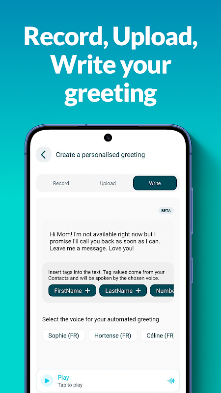 Hãy làm hài lòng khách hàng và bạn bè của bạn bằng lời chào thư thoại do bạn tạo riêng cho họ. Ngăn chặn thư rác không mong muốn để lại tin nhắn bằng cách tạo lời chào cho họ biết rằng họ không được chào đón.