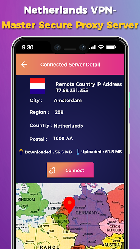 Enjoy and Protect your Privacy with free of cost using VPN Master Netherlands-Secure Proxy Server if you like application don't forget to share and rate us..!!