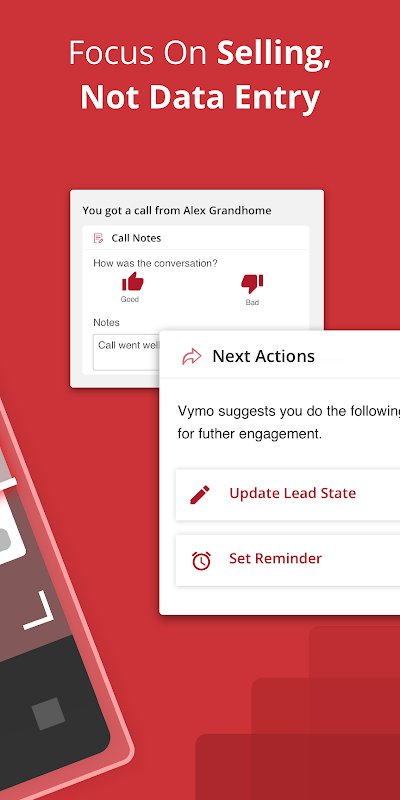 Vymo phân bổ dẫn, kế hoạch tiến độ, ưu tiên các hoạt động và cho phép ra quyết định KRA lãnh đạo một cách dễ dàng sử dụng. Mỗi đại diện bán hàng và tất cả mọi người hiện trường bây giờ có thể mở khóa toàn bộ giá trị của mỗi tương tác khách hàng và đem lại kết quả một cách hiệu quả hơn.