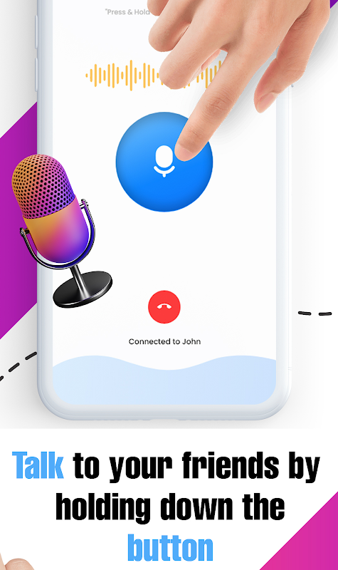 Ứng dụng android One-click để nói chuyện- PTT walkie-talkie sử dụng một lần nhấn giữ để nói chuyện, chỉ cần giữ nút gọi và nói.