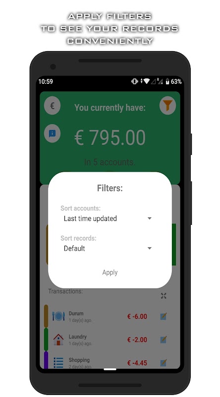There are plenty of money tracking apps out there. But some of them are complicated enough while the only thing you want to do is to record an outcome record and income and see the total per account and total in all accounts.