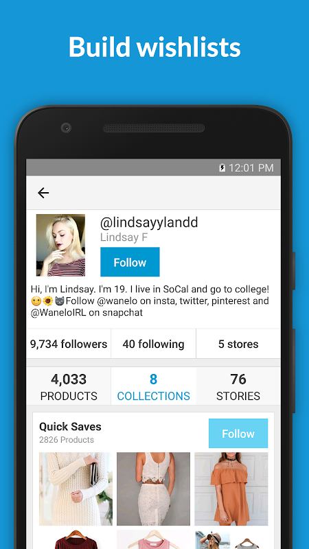 1. Every day, Wanelo will show you new amazing products just for you. As you save products you like, Wanelo learns about your style. The more you use it, the better it gets!