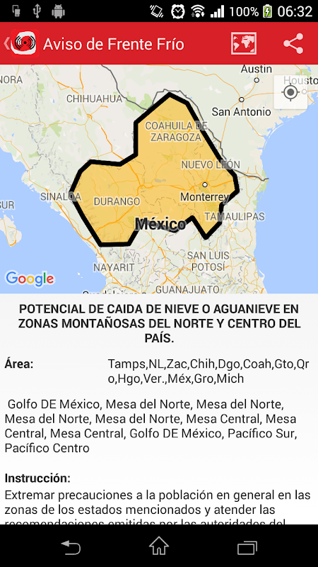 ứng dụng di động mà thông báo cho người sử dụng và hiển thị các sự kiện thời tiết khác nhau như Quake, sóng thần, núi lửa và bão, tập bản đồ cũng vùng có nguy cơ hiển thị: Lở đất, Chaps, Innundación. Núi lửa, tro núi lửa và sóng thần của Mexico và thế giới.