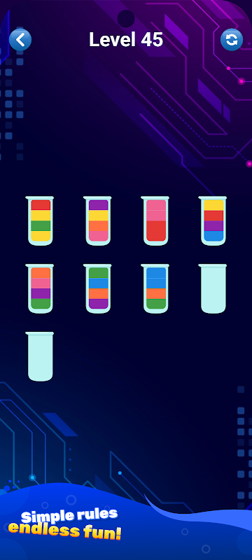 Tải Water Sort Puzzle ngay và đắm chìm vào trò chơi giải đố phân loại nước giúp rèn luyện trí óc nhưng cực kỳ thú vị và gây nghiện này để trải nghiệm sự thư giãn tuyệt đối!