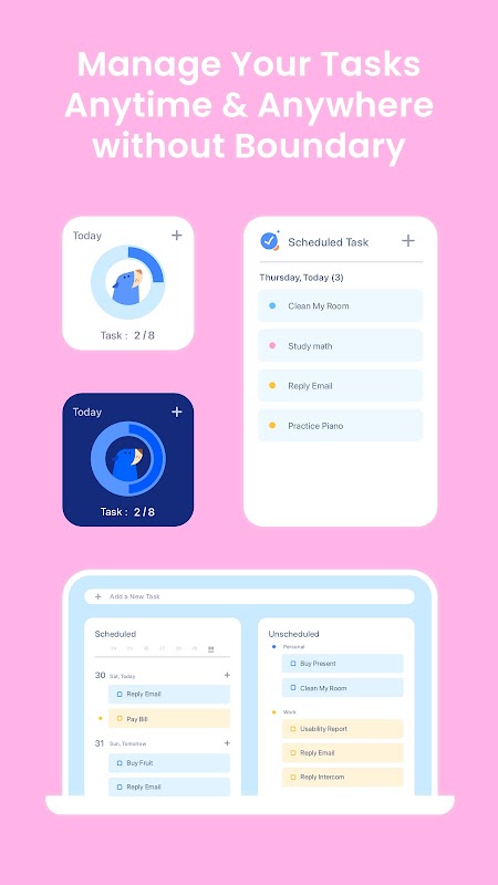 - Lên lịch cho các nhiệm vụ của bạn một cách dễ dàng, trở thành bậc thầy về quản lý thời gian.