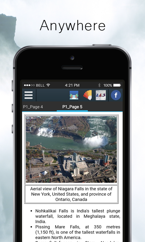 A waterfall is a place where water flows over a vertical drop or a series of steep drops in the course of a stream or river. Waterfalls also occur where meltwater drops over the edge of a tabular iceberg or ice shelf.