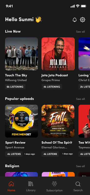 Nghe các luồng trực tiếp, podcast và âm thanh.