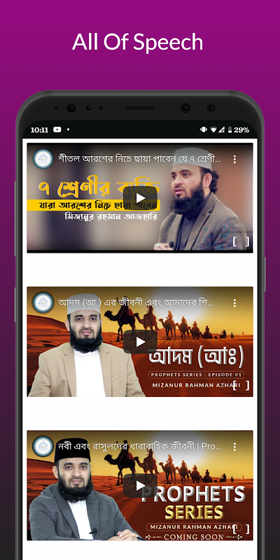 বিঃদ্রঃ সকল ভিডিও ইউটিউব এপিআই রুলস/নিওম মেনে ইউটিউব থেকে বাছাইকরে অ্যাড করা হয়েছে এবং ভিডিওর মধ্যে কোন প্রকার এ্যাড ব্লক করা হয়নি। এরপরও যদি ভিডিও মালিকগণের এই Mizanur Rahman Azhari App এ থাকা কোন ভিডিও নিয়ে কোন প্রকার আপত্তি থাকে তাহলে দয়াকরে আমাদেরকে মেইল এ জানান আমরা আপনার ভিডিও 24 ঘন্টার মধ্যে অ্যাপ থেকে সরিয়ে ফেলব।