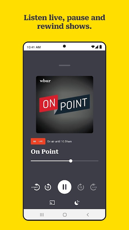 Phát, tạm dừng, tua lại (và phát lại) các chương trình radio trực tiếp từ các đội từng đoạt giải thưởng tại WBUR và NPR. On Point, Here & Now, Radio Boston, Circle Round, Endless Thread, v.v. đều nằm trong tầm tay bạn.