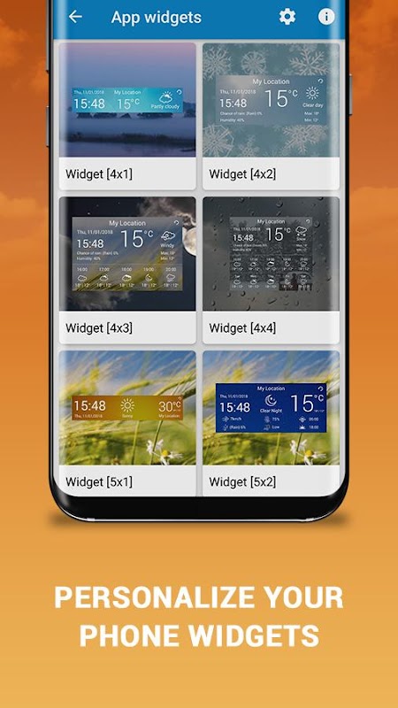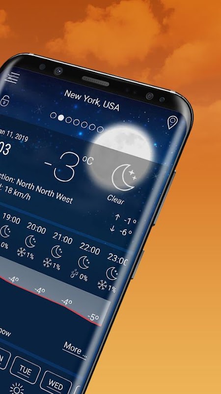 - Change unit setting: Temperature (C/F), Time format (12h/24h), Precipitation (mm, inch), wind speed (km/h, mi/h, m/s), pressure (mmhg, hPa, mbar)