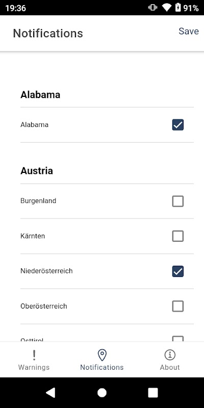 Ứng dụng Warningfy cho phép bạn xem các cảnh báo thời tiết được ban hành trên khắp Hoa Kỳ và nhiều quốc gia trên khắp Châu Âu. Bạn có thể đăng ký nhận thông báo đẩy cho một khu vực mà bạn chọn, hoàn toàn miễn phí. Ngay sau khi cảnh báo được đưa ra cho khu vực đó, nó sẽ được gửi đến điện thoại của bạn, do đó bạn sẽ luôn được cảnh báo.