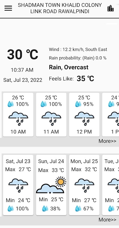 Ứng dụng thời tiết cũng cung cấp áp suất đẳng áp, khoảng cách tầm nhìn, độ ẩm, điều kiện thời tiết, điểm sương, tốc độ gió, lượng mưa, hướng gió, ngoài 15 ngày trong dự báo tương lai và dự báo thời tiết hàng giờ.