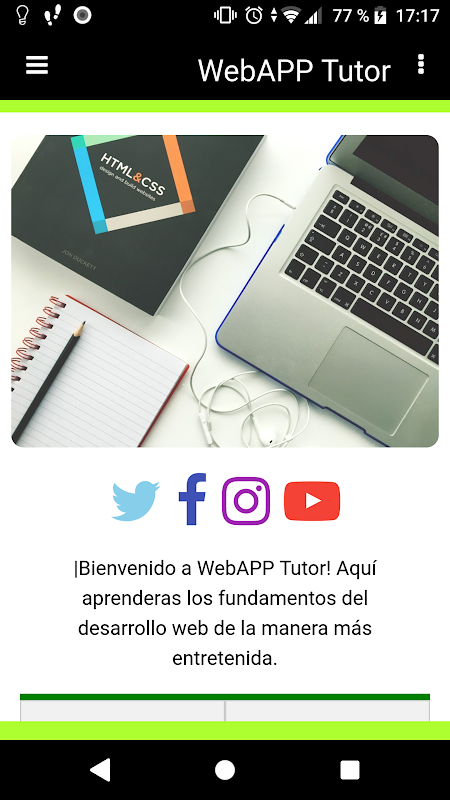 Aplicació dedicada a l'aprenentatge de HTML, CSS i JS; els tres llenguatges emprats en el desenvolupament web. Dins la APP s'explica els fonaments de cada llenguatge de forma estructurada, dividida i entretinguda. A més per tal de reforçar l'aprenentatge i donar-li una vessant més pràctica, hi ha tres video pràctics, clars i comprensibles. L'aplicació ha estat desenvolupada integrament en els llenguatges que s'hi expliquen (HTML/CSS/JS).