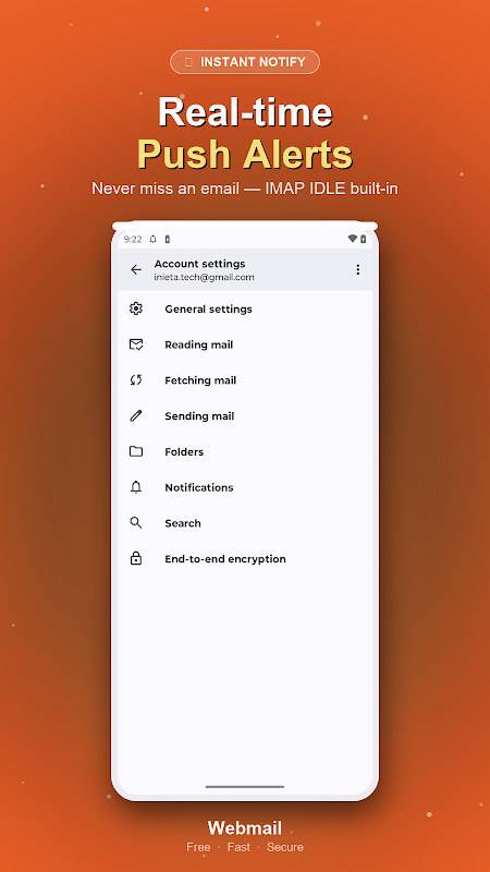 ✅ Thông báo đẩy tức thì — Nhận thông báo ngay khi có email mới đến qua IMAP IDLE