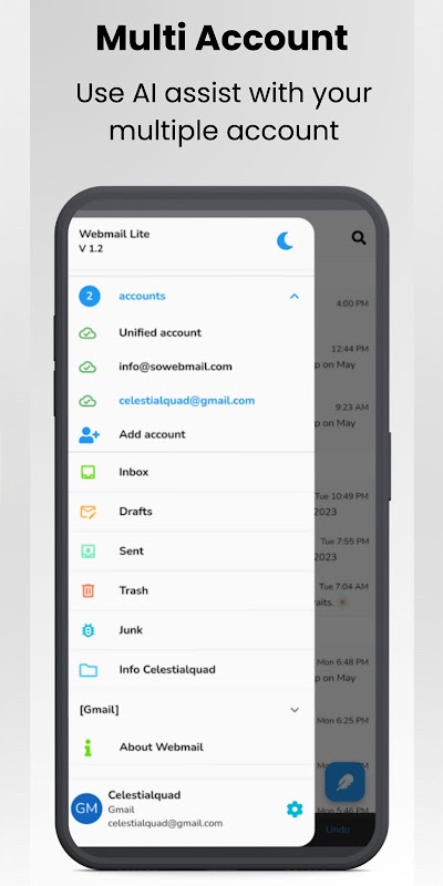 Ứng dụng email đơn giản và an toàn sẽ tạo điều kiện truy cập, xem và quản lý email của bạn từ nhiều tài khoản email của bạn tại một nơi. Ứng dụng email chuyên nghiệp để xử lý các yêu cầu email công ty của bạn. Luôn lạc quan với các tính năng của ứng dụng email khách trên máy tính để bàn được đóng gói trên điện thoại di động của bạn. Giữ an toàn cho dữ liệu thiết bị quan trọng của bạn khỏi tất cả những người nhận email bằng cách sử dụng các giao thức bảo mật và bảo vệ quyền riêng tư mới nhất. Webmail có sẵn và hỗ trợ nhiều ngôn ngữ.