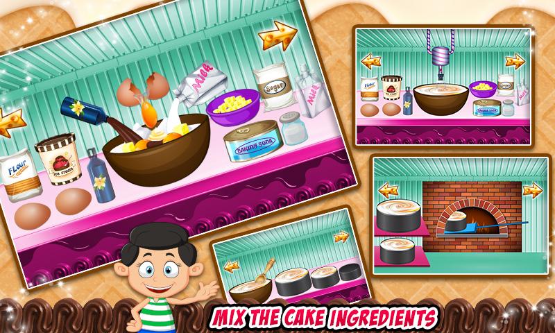 Nhanh lên! Khách hàng đến cửa hàng bánh nhà máy của bạn để đón đơn đặt hàng của họ. Chọn khách hàng bánh yêu thích, để nướng bánh đầu tiên nướng bánh đơn giản bởi với các máy trộn trứng, bơ, bột mì, bột nở và hương vị. Làm cho các lớp khác nhau, nấu bánh vào lò nướng. Bây giờ thêm topping và kem luật sư khác nhau với các máy tự động hóa. Hãy sô cô la, vani, xoài và các loại bánh khác. Cuối cùng trang trí bánh với đồ trang trí ngày cưới & rắc. nhà máy sô cô la này làm cho bánh bếp giỏi nhất. Ở đây chúng tôi đi! món tráng miệng ngọt sẵn sàng để được chuyển cho khách hàng.
