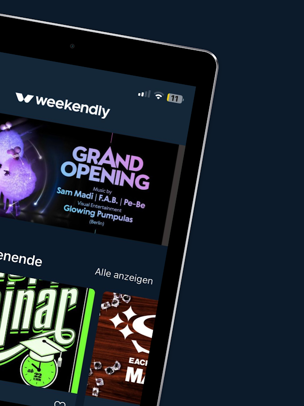 Với ứng dụng cuối tuần, bạn biến mỗi cuối tuần thành một trải nghiệm khó quên. Khám phá những bữa tiệc được thiết kế riêng phù hợp với sở thích của bạn một cách chính xác. Chế độ xem chi tiết của bữa tiệc cung cấp cho bạn thông tin chi tiết về sự kiện và thậm chí bạn có thể nghe các bản nhạc mới nhất của DJ. Và tốt nhất? Bạn có cơ hội giành được vé tham dự các sự kiện hấp dẫn nhất. Biến mỗi cuối tuần thành điểm nhấn với Weekendly.