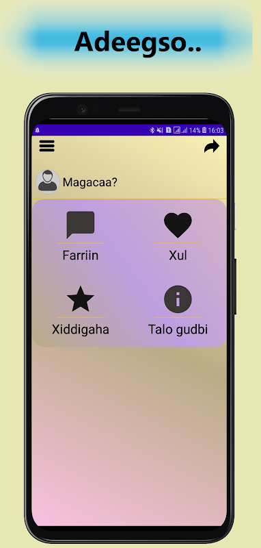 * Inuu kuu soo diro farriimo dareenkaaga ka turjumaya.