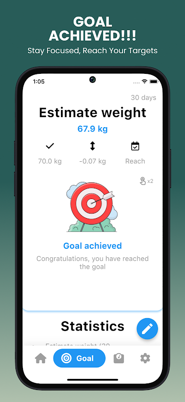 Đặt mục tiêu cân nặng với ứng dụng theo dõi cân nặng của chúng tôi luôn giúp bạn có động lực và tiếp tục lối sống lành mạnh.