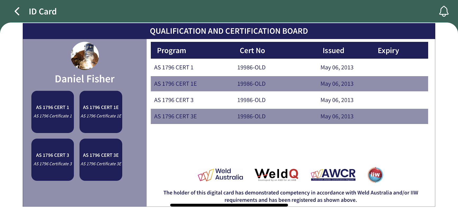 Ứng dụng di động WeldQ dành cho người dùng đã đăng ký của nền tảng / trang web WeldQ. WeldQ có sẵn cho thợ hàn, thanh tra, giám sát và điều phối viên để quản lý bằng cấp và chứng chỉ của họ và sử dụng như một thẻ ID hoặc ví kỹ thuật số. Ứng dụng WeldQ có thể được sử dụng để xem thẻ Thợ hàn / Giám sát / Chứng nhận kỹ thuật số của bạn, các văn bằng & chứng chỉ được trao, trạng thái / kết quả của các ứng dụng và email WeldQ. Với ứng dụng WeldQ, bạn có thể thanh toán phí kiểm tra và quản lý xác nhận trình độ thợ hàn. Để áp dụng và cập nhật tài khoản WeldQ của bạn phải được thực hiện trên nền tảng WWW trên máy tính cũng như các ứng dụng ban đầu. WeldQ được kết nối với Cơ quan Đăng ký Chứng nhận Thợ hàn Úc (AWCR) do Weld Úc quản lý.