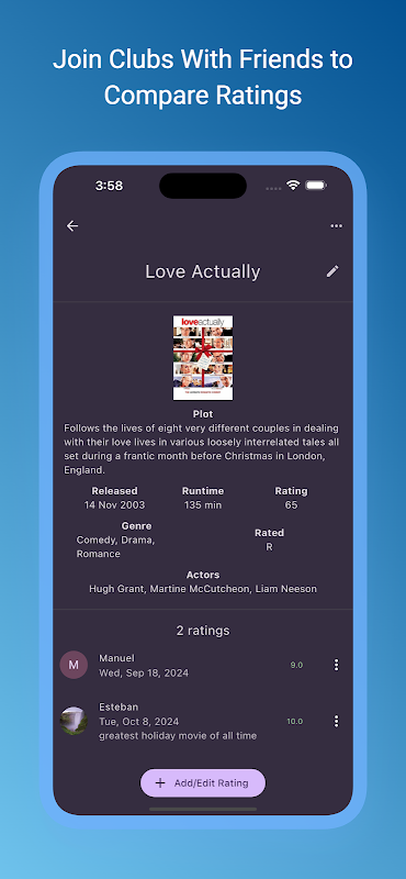 Mời bạn bè cùng xếp hạng: Thêm bạn bè của bạn vào câu lạc bộ của bạn và xếp hạng một cách hợp tác. Chia sẻ ý kiến, khám phá các mục yêu thích mới và so sánh xếp hạng, tất cả ở cùng một nơi.