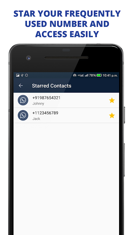 This app is not related to WhatsApp Inc. This app uses the public API provided by WhatsApp to open a chat with any number. The names and numbers saved in the app is created and saved locally, so if you uninstall the app, clears data, or delete number it is lost permanently. We are not saving any numbers in our servers. Also it is job of the users to ensure the number is correct.
