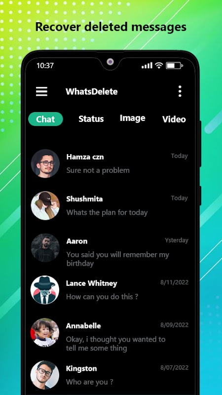 Để xem tin nhắn và ảnh đã xóa WA, chỉ cần mở ứng dụng WhatsDelete này và xem chúng.