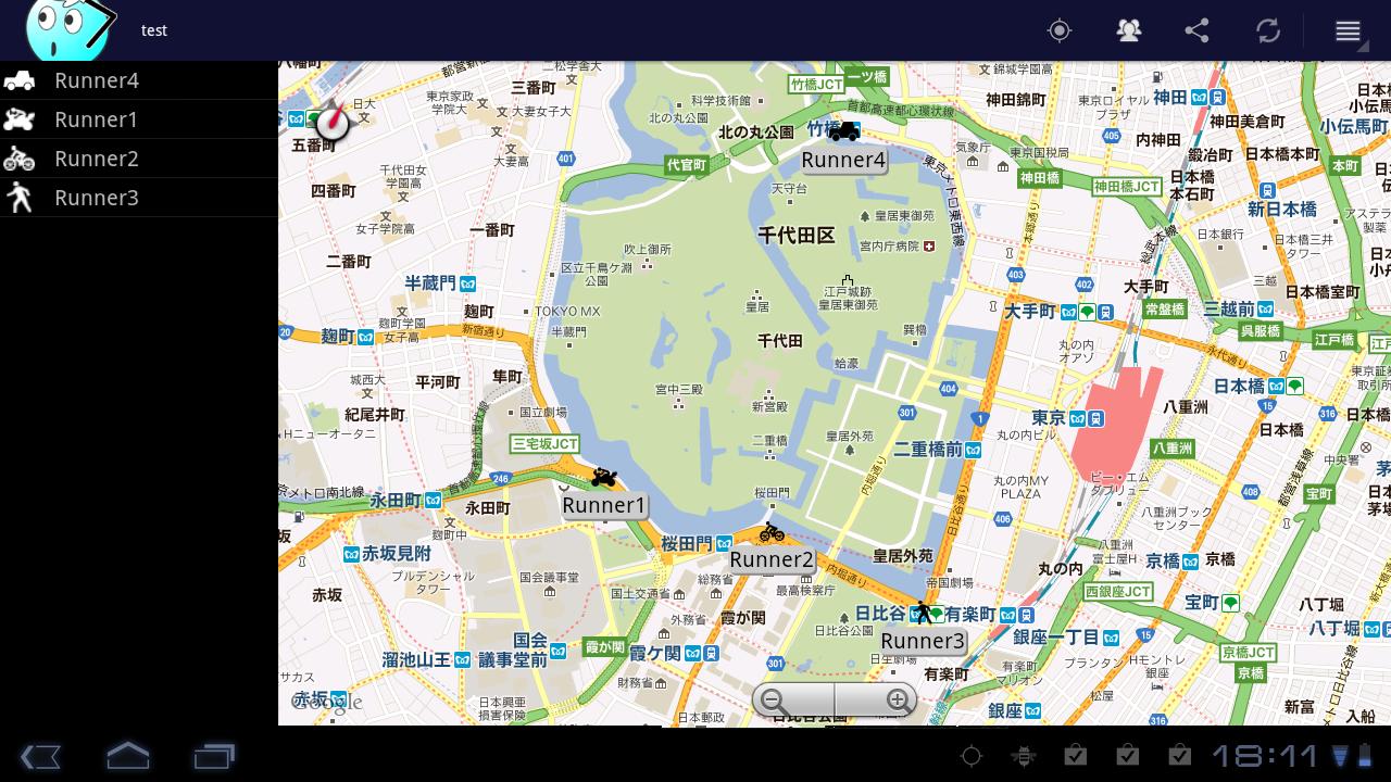 しばらくすると、同じキーワードを指定した友達が地図上にアイコン表示されます。
