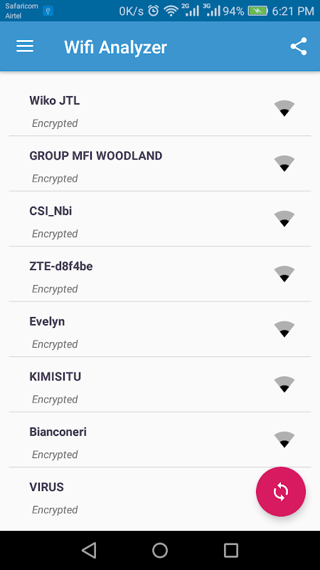 WIFI Analyzer Scan all WIFI networks that are within your area, Provide a list of those networks including Name, Strength and Security.