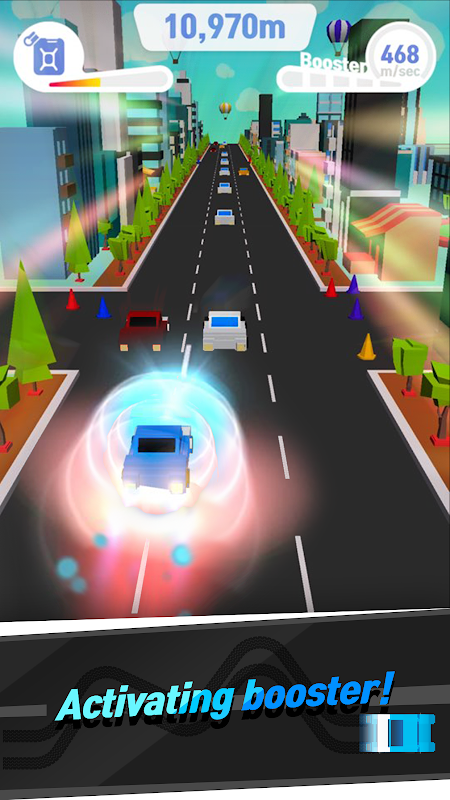Avoid the cars right before the crash, activate booster and blow up the cars!