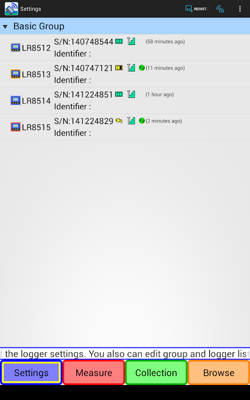 Các công cụ cho một loạt Hioki Wireless Mini với Logger Wireless Collector.