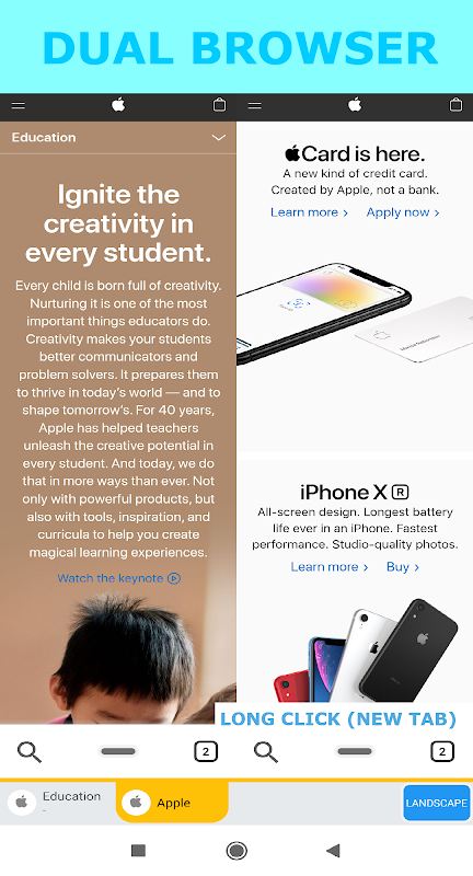 - Trang tab chia đôi (Nếu bạn nhấp lâu vào nút tab, màn hình tab mới sẽ được chia thành hai màn hình.)