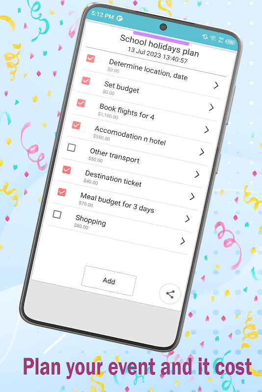 * Bạn có thể thiết lập chi phí cho mục danh sách (số tiền chẳng hạn)