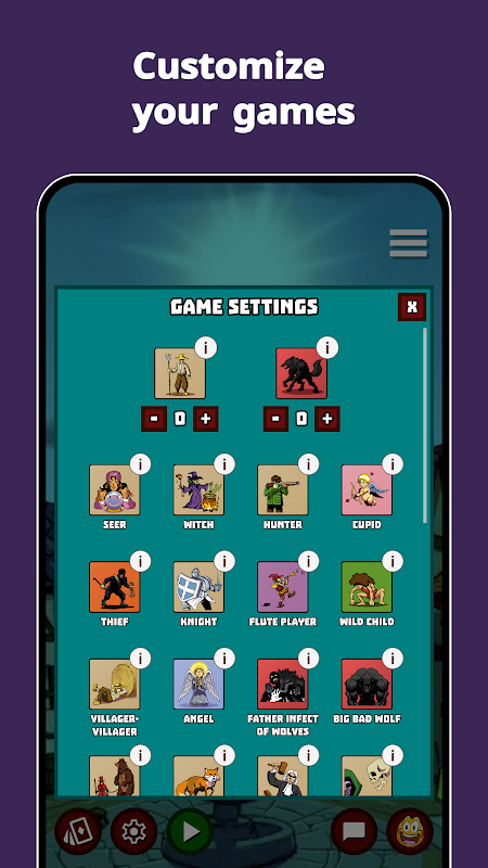 Mỗi vai trò đều có một sức mạnh bí mật, một nhiệm vụ độc nhất... Đó là chiến thắng trò chơi bằng cách giành lấy ngôi làng, bầy đàn, theo cặp, hoặc đôi khi là một mình.