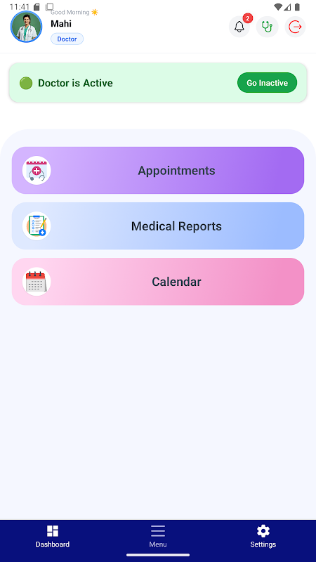 Trạng thái Bác sĩ Đang hoạt động/Không hoạt động: Bác sĩ có thể chuyển đổi trạng thái sẵn sàng làm việc của mình để phản ánh trạng thái hoạt động, cho phép hệ thống quản lý các cuộc hẹn hiệu quả và giảm thời gian chờ đợi của bệnh nhân.