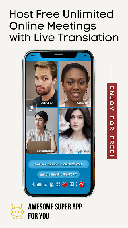 Chúng tôi giới thiệu bản dịch trực tiếp trong các cuộc họp của bạn, WOOOO A.I hoạt động hiệu quả trong khi bạn tiến hành cuộc họp trực tiếp với người có ngôn ngữ khác. Dịch trực tiếp có sẵn trong trò chuyện và cuộc gọi trực tiếp.