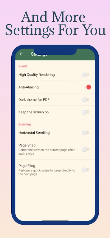 ✔ Reader – PDF Viewer allows you to scroll pages and zoom in and out in a horizontal or vertical view.